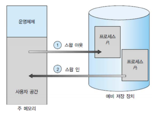 보조메모리(디스크)로 보내 버리는데 이 작업을 "swap out"이라고 한다.
